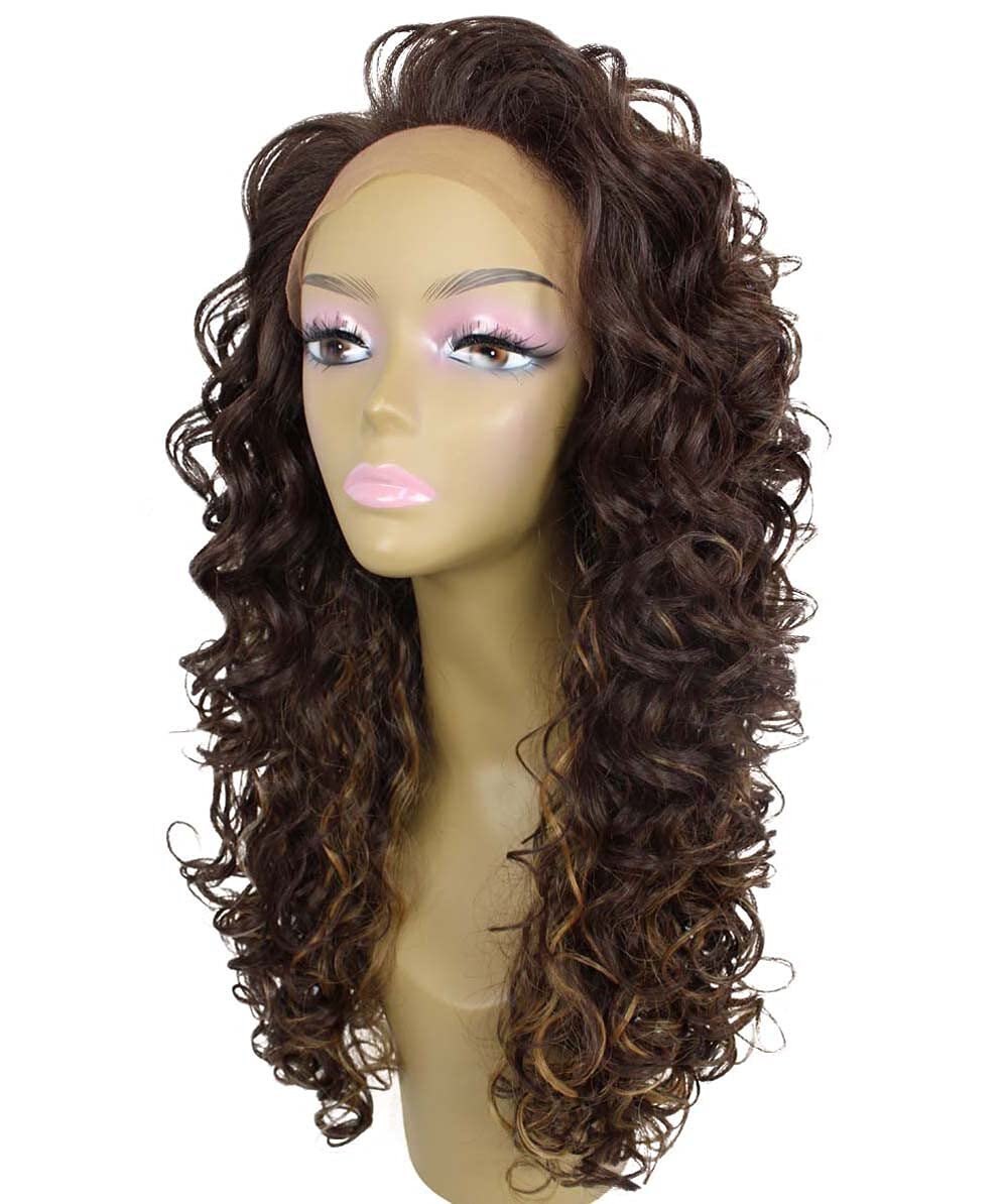 Luxluxe Mariah Curly 16 Inch Long 7x4 Hand Tied Lace Front Wig Heat Resistant Fiber 20 Shades Of Natural Dip Dyed Blended Colors F4 27 Brown With Golden Highlights Walmart Com